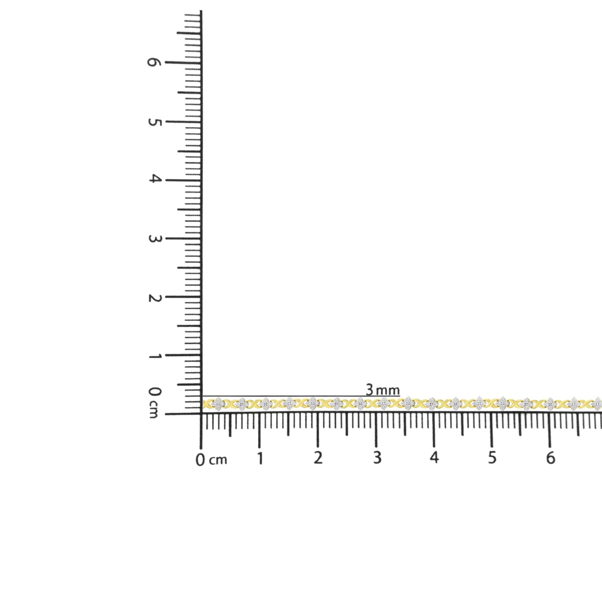 This lovely diamond bracelet displays glittering round cut diamonds mounted in a floral inspired shape that link together by polished yellow gold X's. Crafted from 10k yellow gold plated sterling silver, this bracelet features 1/4ct TDW of natural diamonds.