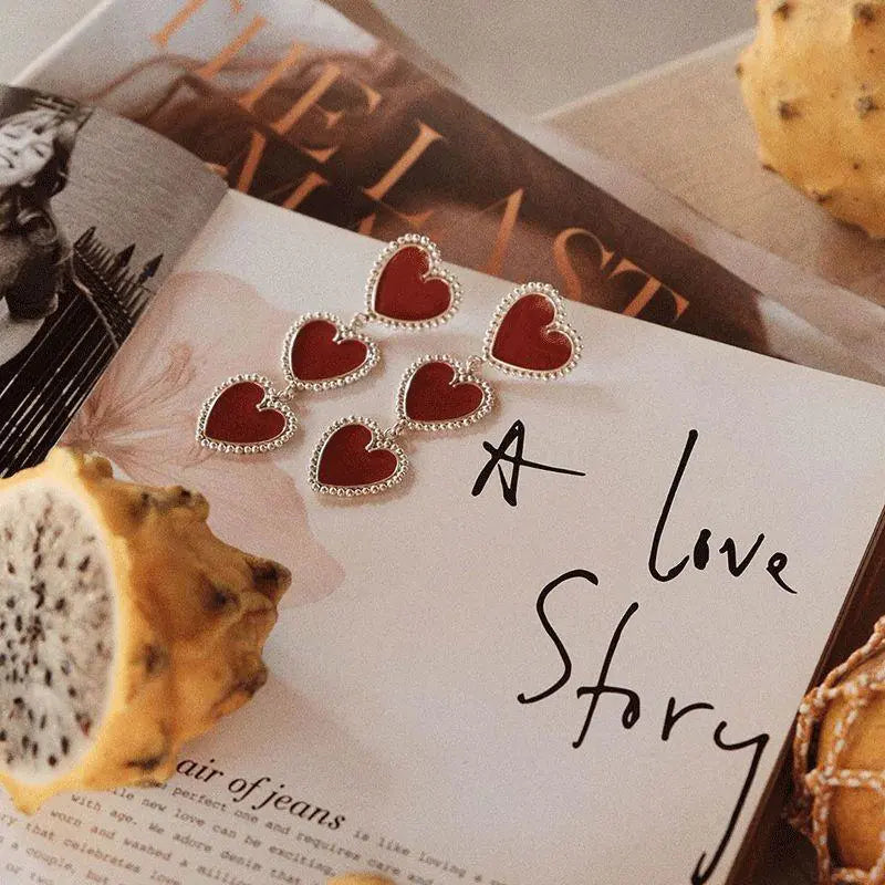 Love is in the air with these heart drop earrings. Delicate, cute and very romantic. Gold plated with bright red fill.