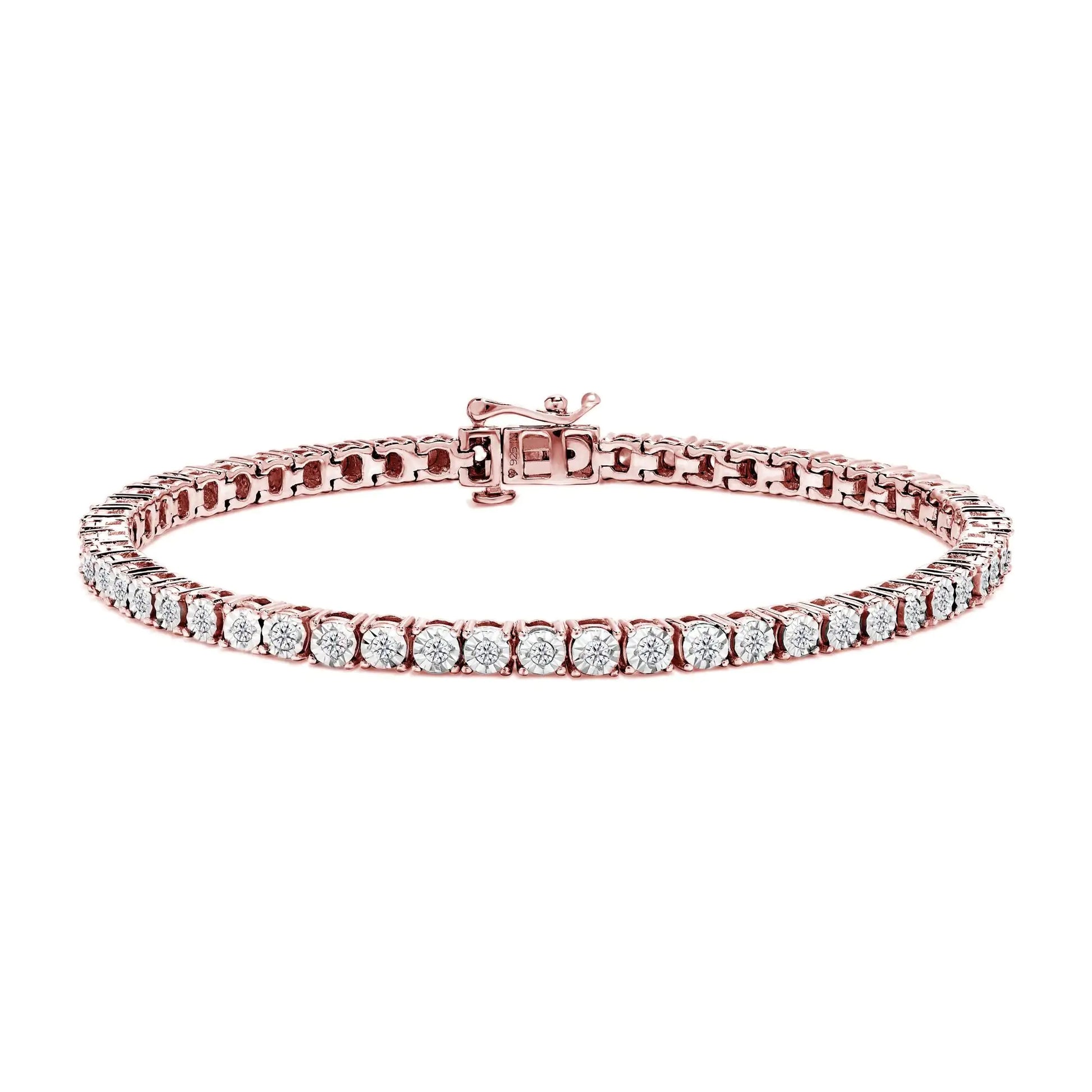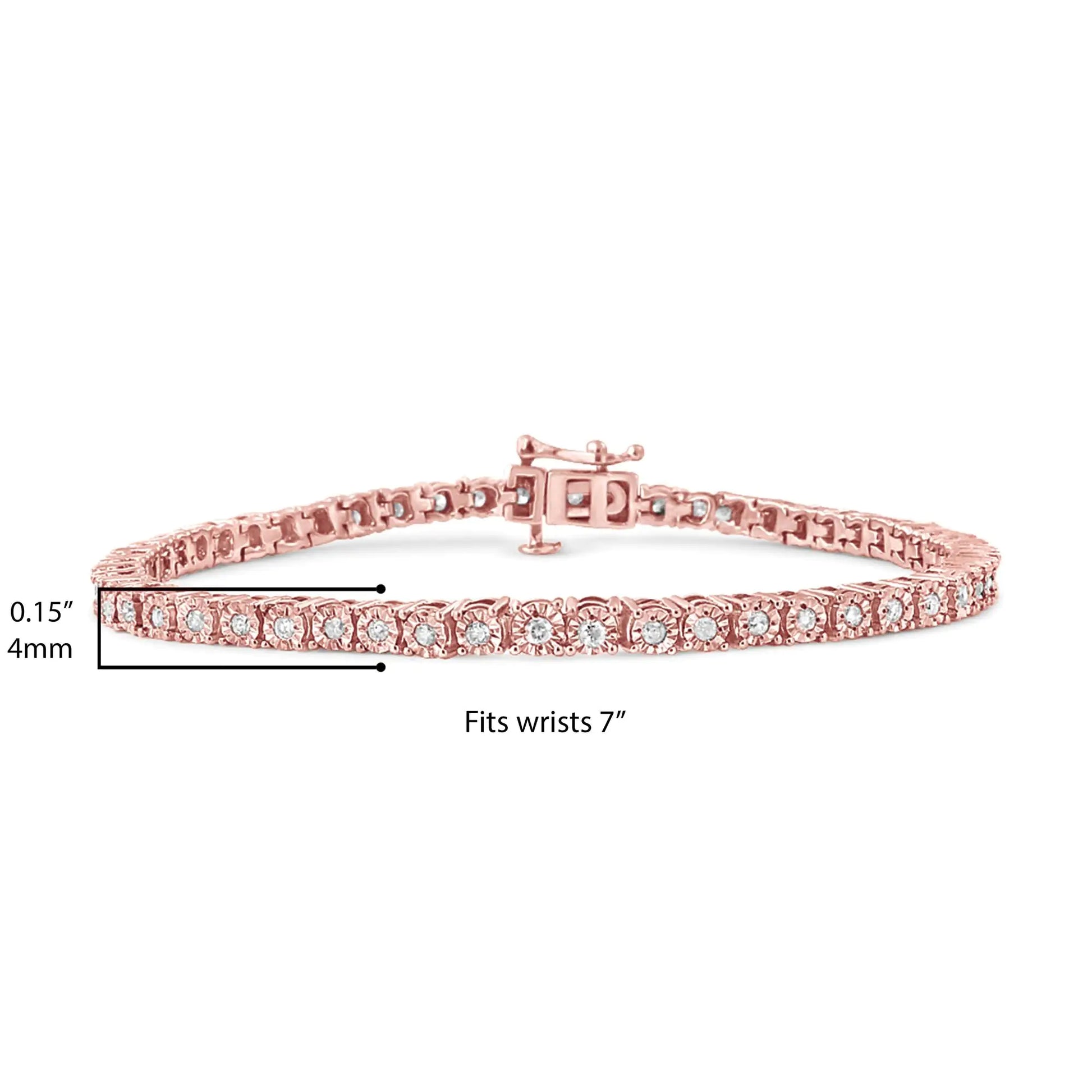 .925 Sterling Silver 1.0 Cttw Miracle-Set Diamond Round Faceted Bezel Tennis Bracelet (I-J Color, I3 Clarity)