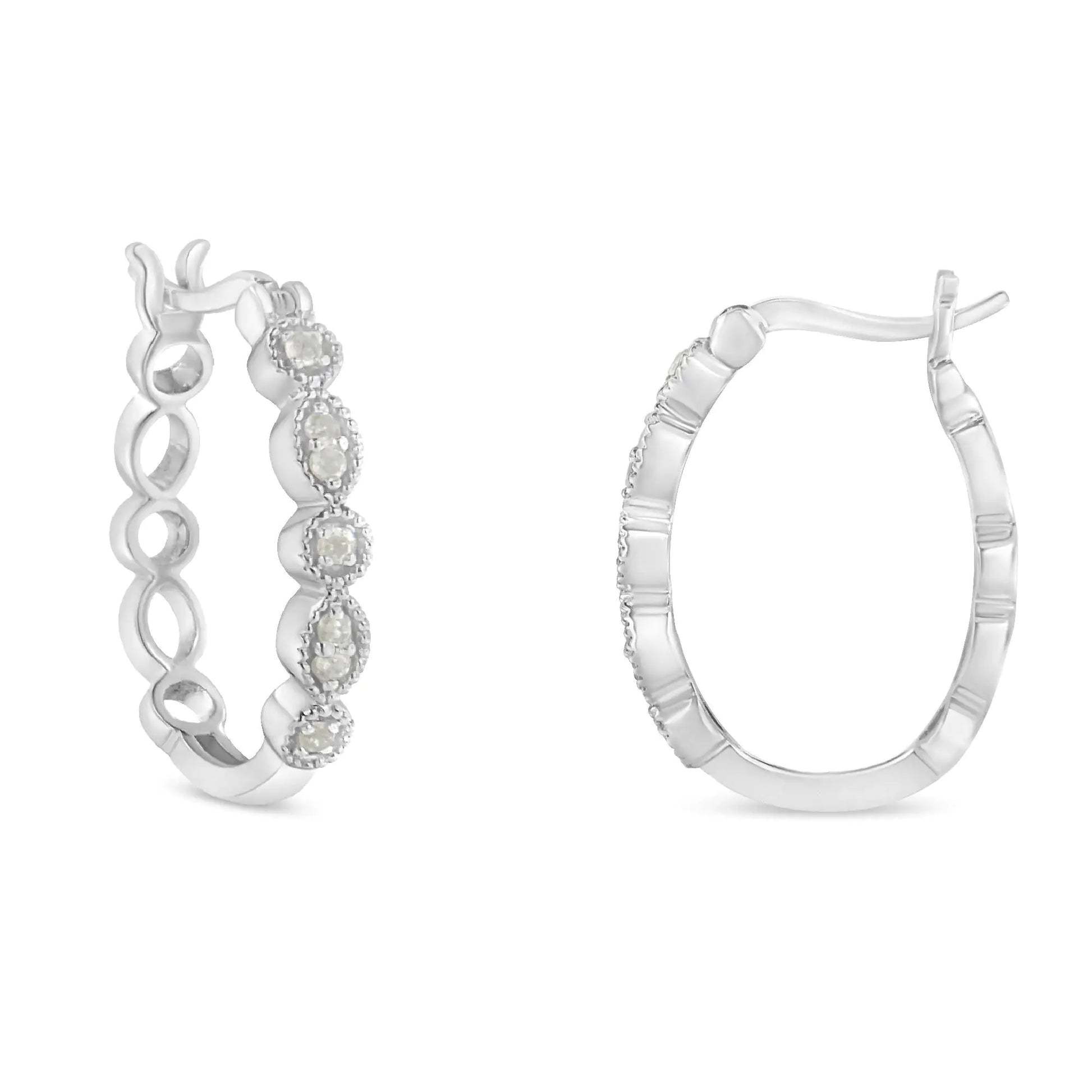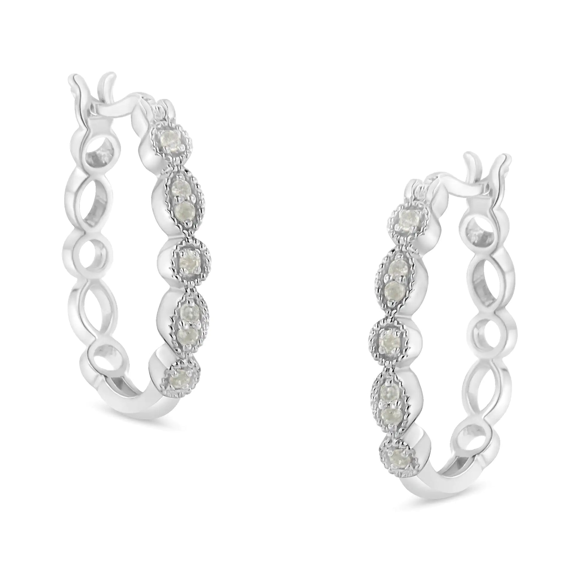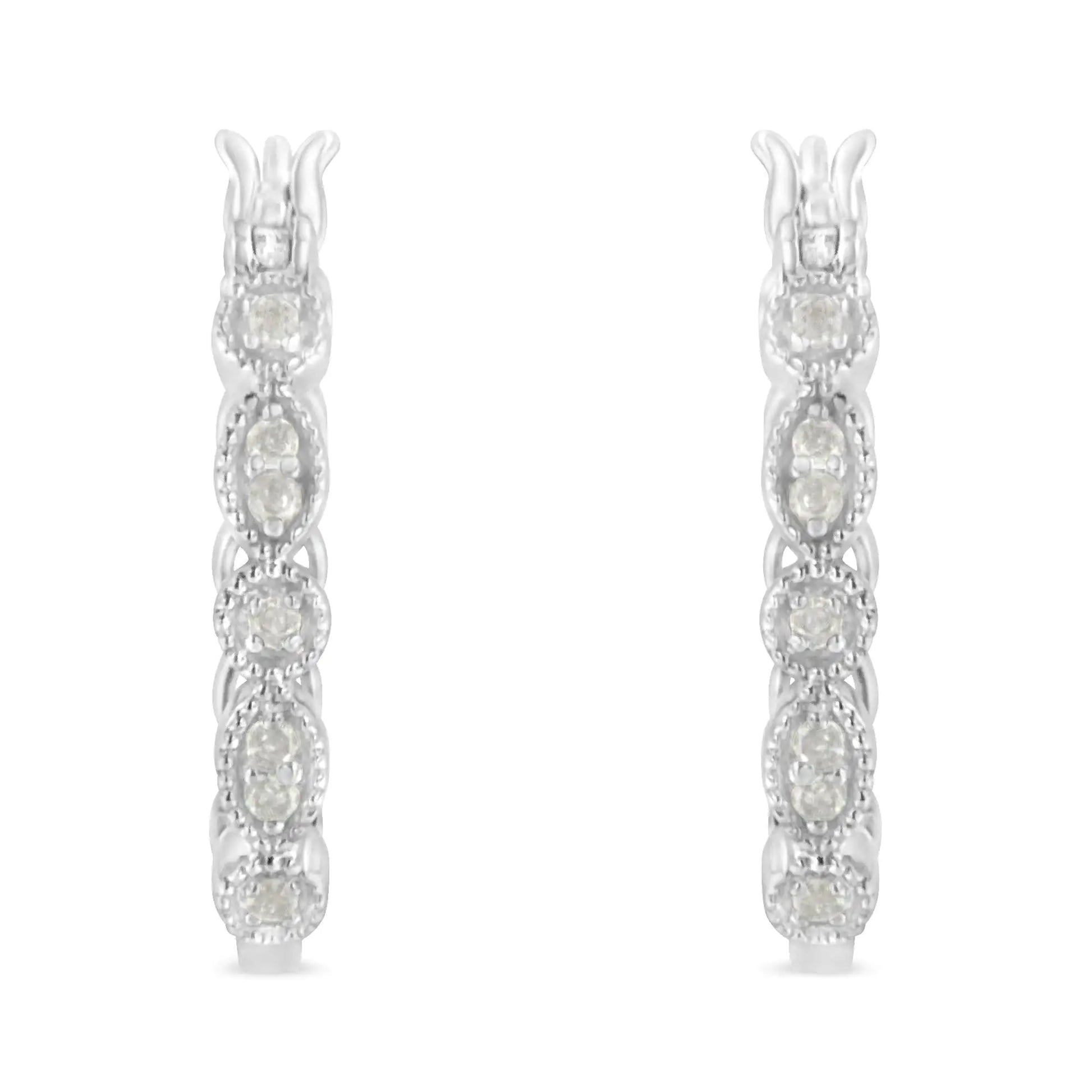 .925 Sterling Silver 1/6 cttw Diamond Milgrain Hoop Earring (I-J Color, I3 Clarity)