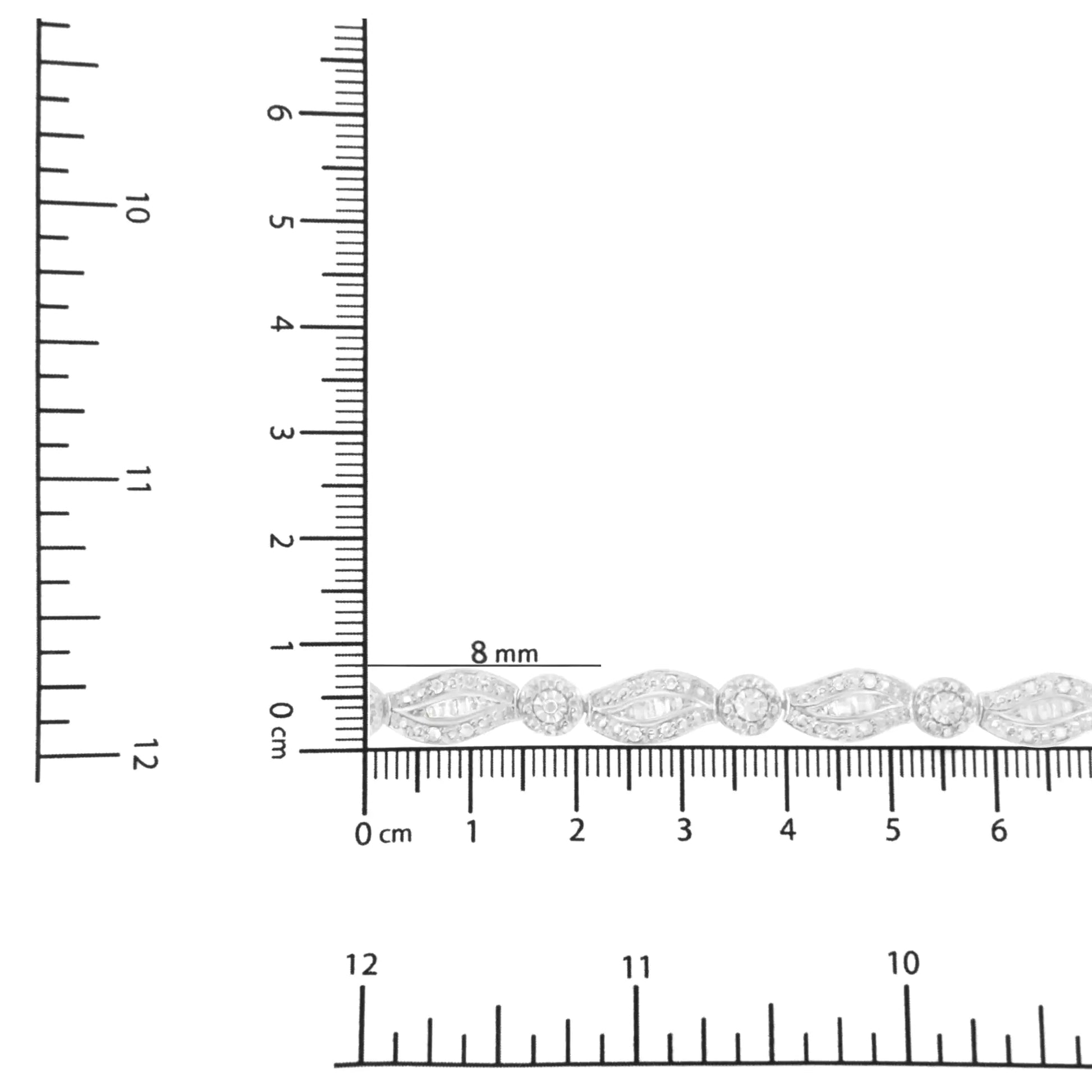 Add a little sparkle to your outfit with this lovely sterling silver link bracelet that features 1 ct TDW of diamonds. A round cut diamond sits in the middle of a beaded silver halo and serves as on of the links that alternates throughout the bracelet with baguette studded leaf shaped links. The leaf shape link features a row of shimmering baguette cut diamonds that is framed between two silver beaded ribbons accented with round diamond that add extra sparkle.